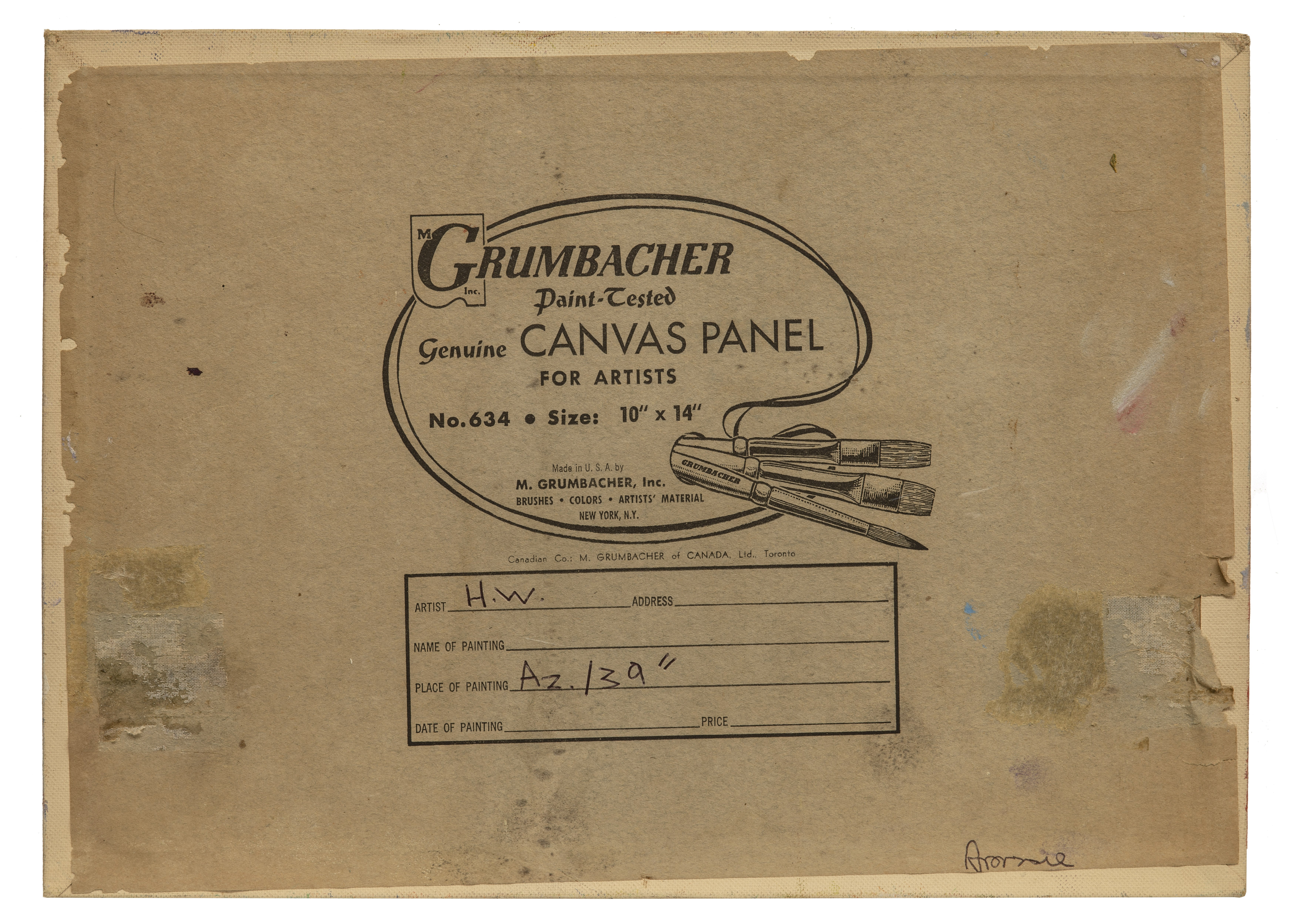 The vintage landscape impressionist oil painting inscribed Az and 39 on the back of the painting board.