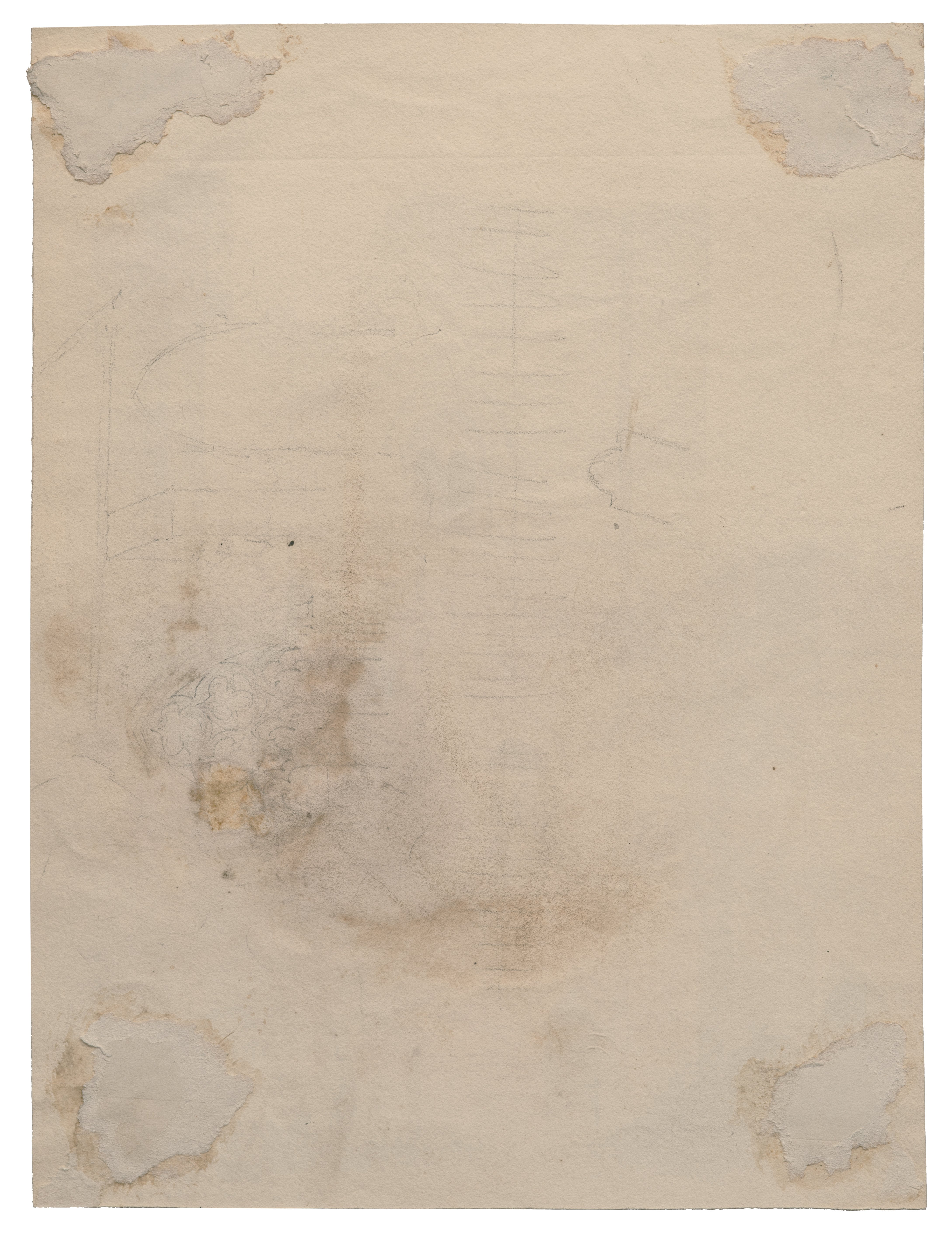 Condition: The sheet with toning, staining, and wear, the back of sheet with heavy mounting residue, the sheet unevenly cut and trimmed margins, inscribed The Norman Keep Goodrich Castle Herefor